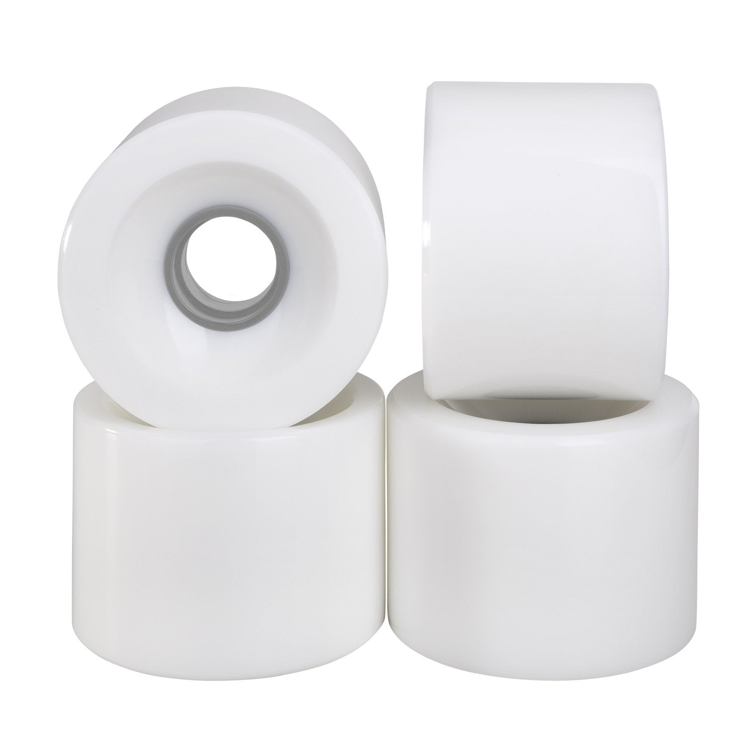 These chunky, 65x51mm wheels have a durometer rating of 80A. Center hub adds strength. It’s a great wheel for cruisers and longboards, but is also a good pick for making a popsicle deck ride more smoothly on the street.