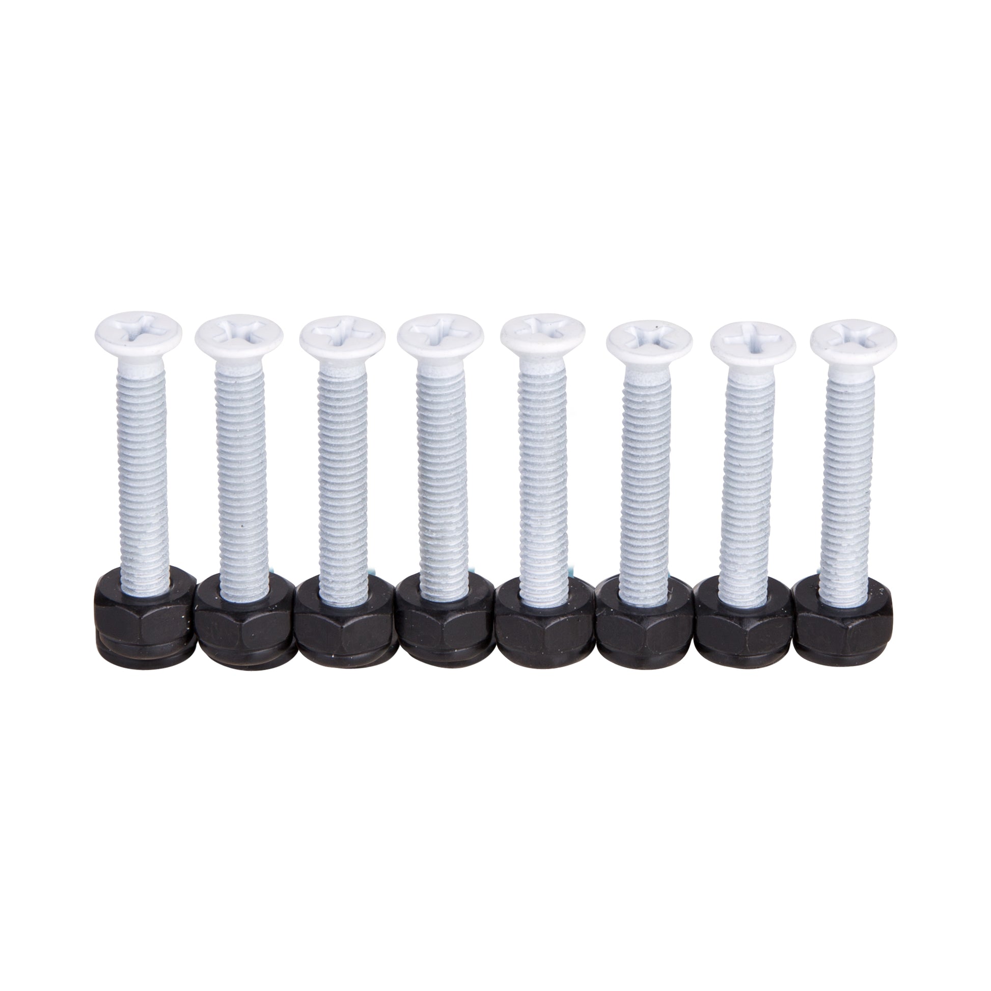 Package includes eight (8) Phillips head screws with eight (8) accompanying nuts, sixteen (16) pieces of hardware in all.